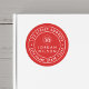 Modern return address sticker that you can add your own logo featuring a round double border for your address in between it and your name in the centre all in white against an editable background colour (click customise to change). This sticker is ideal for businesses when they are sending out mail or packages to their customers.