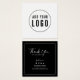 Stylish packaging insert card featuring your logo on the front. The back has a white border with "Thank You" in modern calligraphy script and you can add the rest of your social media and web information all against an editable background colour (click customise to change).