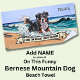 Add Name, Bernese Mountain Dog Splashing Waves Dog Beach Towel
