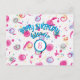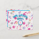 Flat postcard, printed on reverse side with repeat of front confetti design in a frame around WHITE FIELD for your message.