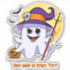 Cute Blue Ghost with Pumpkin, Red Trident, Moon, Skull and Bats Flying - for Halloween - Add the Name or Other Text you want - Celebrate Halloween with this great Sticker - you can change the sticker size - 6 sizes available. - See my store for lots more great Halloween Stickers, Party Table Settings and More.