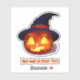 Cute Pumpkin, with Witch Hat, Lit Up for Halloween - Add the Name or Other Text you want - Celebrate Halloween with this great Sticker - you can change the sticker size - 6 sizes available. - See my store for lots more great Halloween Stickers, Party Table Settings and More.