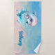 Add Name, Dolphin Swimming with Bubbles Pink Blue Beach Towel