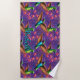 Add Name Fantasy Flight of Colourful Hummingbirds Beach Towel
