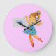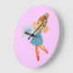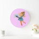 Add name Flower Fairy clock, girly pretty bluepink Large Clock