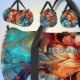Add Name Flowers Aqua & Gold Floral Abstract Duffle Bag