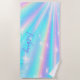 Add Name, Holographic Look Starburst Aqua Pink Beach Towel