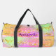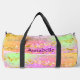 Add Name, Pink Green Gold Brush Strokes Stars Duffle Bag