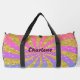 Add Name, Pink Purple Gold Swirl Pop Art Stars Duffle Bag