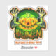 Pumpkin Head with Skeleton Hands & Wings on Green - for Halloween - Add the Name or Other Text you want - Celebrate Halloween with this great Sticker - you can change the sticker size - 6 sizes available. - See my store for lots more great Halloween Stickers, Party Table Settings and More.