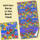 Add Name, Red & Yellow Flowers on Blue Beach Towel