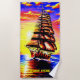 Stylised Abstract Pirate Sailing Ship at Sunset - - See more great beach towels in my store.