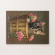 Add Name Text, Cute Adorable Kitten Basket Flowers Jigsaw Puzzle