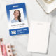 Upload your own logo and photo and make custom name tags and employee id badges for your company. Easy to use template. You can resize the photo, logo and bar code with the design tool. To resize the photo you first need to unmask it. Fonts and colours except the white part of the gradient are customisable.