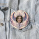 Add a photo to this comforting memorial button with angel wings and a cloud in pastel colours.
