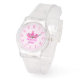I only have one complaint. I ordered the watch with clear case and strap, and what was sent was white case and strap. I'm going to keep it because 1) it looks very nice in white, and 2) it would take too long to get a replacement made and sent in time for my occasion. Aside from the mix up with the color, the watch does look very good in white. The purple dial is actually sparkly which did not show in the online images. That was a nice surprise. If you like Swatch watches this is very similar to those. It's 33.6mm in diameter, 10.5mm thick, and 40.6mm lug to lug. Stainless steel case back says 3ATM/30m WR, so no swimming or showering or submerging this one. If you like Woodstock, this is a great choice.
