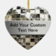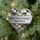 Beautiful mosaic silver heart shape abstract bling design with a shiny disco party mirrorball look on both sides makes a festive and great Christmas, Hanukkah, or New Year holiday ornament, favour or gift! Great for kids, teens, men and women of all ages! Now you can easily add any custom text onto the silver look plate to personalise names, dates, special occasion, etc.