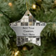 Beautiful mosaic silver popular star shape abstract bling design with a shiny disco party mirrorball look on both sides makes a festive and great Christmas, Hanukkah, or New Year holiday ornament, favour or gift! Great for kids, teens, men and women of all ages! Now you can easily add any custom text onto the silver look plate to personalise names, dates, special occasion, etc.