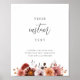 Elegant sign where you can add your custom text! Design with beautiful modern calligraphy details and an exquisite floral border with flowers in burgundy blush, dusty rose, pink, peach, champagne, and yellow hues. Ability to also use this sign with any text you like using the template text boxes. You can even select to edit the text using the design tool and make changes to its font style, size, colour, and positioning. 10" x 8" is only our default size, the sign is available in many sizes. Easy to frame or glue/staple into inexpensive MDF.