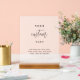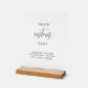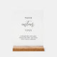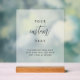 Personalise this elegant wedding acrylic sign with any message you might need! Design with beautiful graceful modern calligraphy details. Personalise it with your message using all the text boxes you like. You may even personalise it further, edit this design using the design tool, and make changes to the text's font size, font style, and even the text line positioning. 8" x 10" is only our default size, the sign is available in several sizes. Elegant, simple, and clean style. "IMPORTANT NOTE: sign in a high-quality acrylic sheet with the text printed in black and a frosted faux look behind, providing a clear view of the text in all spaces, and giving you the frosted appeal for a fraction of the cost! Small sizes come with a wood block to stand, bigger sizes need an easel or surface to stand so they won't warp. This same sign design is also available in poster paper print option, which you can find in our collection". Part of our "Modern Elegant Wedding and Events Signage" collection with a variety of coordinating products available.
