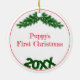 Celebrate your puppy's first Christmas with an adorable ornament featuring a personal photo on the front and details on the back. A square replacement photo will work best. Customise the details in the template fields for the message on the back.