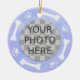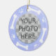 A cute and customisable photo frame ornament for dog owners and puppy fans everywhere. This blue and white frame features a cute dog bone and pawprint motif and has a space to easily add your favourite doggy photo. Customise the text on the back with a personal message to create a cherished keepsake for a dog lover or just as a memento of your own very special pooch.