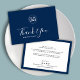 This thank you card has a white rectangle centre and an editable border colour (click customise and change background to change the border colour from blue to a colour of your choice) on the front. On the back you can add your logo against an editable background colour (click customise to change).