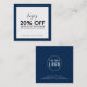 This discount card has a white square centre and an editable background colour (click customise to change) on the front. On the back, add your logo, your contact details and change the background colour to any that you like (click customise and change background).