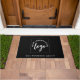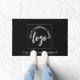 Simple minialist logo on a black doormat for your business entryway from hall or outdoors.. Replace this logo with your own and add your company name underneath.
