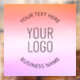 Your own logo and customisable text on colourful background.