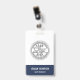 Add your logo to this simple navy blue and white badge to create custom branded name tags for your employees. Customise with a name and title, and add your business address or additional information to the reverse side in white on navy.