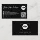 Modern custom company logo generic basic contemporary editable business card template with elegant typography script and QR code in simple black and white.