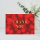 Thank You card featuring the words "Thank You" in faux gold foil against a ruby red bokeh lights pattern background on the front. On the back you can add you logo and other information. This makes a great thank you card to include in your customer's order package.
