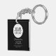 Add your Logo with Custom Text Company Promotion Black Keychain. Insert your logo into the template and customise the text, company name, address and contact information. Business promotion or giveaway for your clients and business partners.
