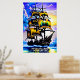 Add Your Message, Brown Blue Sailing Pirate Ship Poster