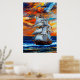 Add Your Message, Sailing Ship Blue Sea at Sunset Poster