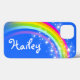 Help protect your child's iphone 6 from knocks and kiddy accidents, with this pretty rainbow design girls tough iphone 6 case. Personalise with your childs name up to 5 letters, perfect short names or nicknames. This example reads Hailey. Exclusively designed and illustrated by Sarah Trett.