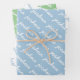 This gift wrap has three different colour options:.light blue background with a repeating name in white, white background with a repeating name in light blue, light green background with a repeating name in white.