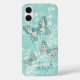 Beautiful graphic art butterflies and floral swirl case in aqua teal, cream and pink for your iphone. A great gift idea, for her birthday or Christmas. Personalise with your of choice name. This example reads: Angel. Original design and butterfly ink sketches by Sarah Trett.