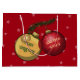 A simple flexible Christmas ornament design, featuring a cartoon of two baubles on an Xmas tree branch, one shiny gold, the other glittering red. Use "Personalise this template" to tweak the "Merry Christmas love from Katie x" text and create a unique, customised item.