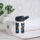 The bottle looks even better in real life. The ice cubes I put in lasts all day! I have my bottle with me all the time. It's summer and having something cold to drink feels amazing. With this bottle I always have something super cold. I have only tried the hot drink once and it lasted a long time as well. The color blue is a navy blue and the white printed on it is vibrant. It printed perfectly. I love my personalized smile water bottle.
