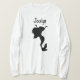 I love this shirt. I had written to the artist asking her if this picture was available on a shirt, and she wrote me back telling me where I could find the shirt. These shirts can be custom made to have a different saying. I loved this saying and went with it. The artist wrote me back later to tell me that she had seen my order go through. How's that for service? Pretty special. It's just as displayed. Perfect!