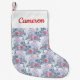 Add Your Name | Pink & Blue Rose Pattern Small Christmas Stocking