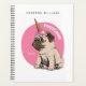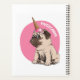Image By Afishka | Shutterstock. Image ID: 1170091624 | Adorable beige puppy Pug in a ice cream party cap on a pink background. Pugicorn - lettering quote.