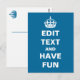 Make your own "Keep Calm and Carry On" parody postcard! To change the background to any colour click "Customise It" then click "Edit".