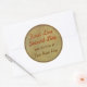 Customise all four lines of the text to your needs. Use the scroll bar to the right to view each editable line in this template. Perhaps you bake and will title the sticker with the food item name for use on a jar or bag. Maybe you make handmade craft, knitted, or sewing creations and will add the sticker to a box. Whatever you decide to say you have four lines to do it in. Available in two sizes to suit your individual gift or sales needs.