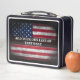 This is a standard metal lunchbox that appears to work just fine. We designed this box ourselves with an uploaded photo and custom text on the front and back. It looks absolutely beautiful except the front of the lunchbox is not centered like it shows in the photo. The print borders don't align with the inset flat part of the box where the preview photo online showed it perfectly centered in there. The back looks nice and centered though.