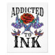 Addicted to ink design is cool tattoo gift for tattoo artist, tattooed men or inked women. Perfect for ink tattoo lover, design features graphic of rose tattoo. Great gift idea for tattoo shop owner or staff
