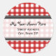 An address label featuring a red gingham background. Personalise with your name and address over centre section with black trim.