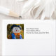 This happy scarecrow smiles at you from a sunny pumpkin patch, supported by a dry cornstalk. It has a white fabric face with eyes, nose and mouth drawn on, topped by a blue cloth hat sporting a yellow flower. It wears a blue and orange plaid shirt, with a blue vest and orange bow tie. I took this photo, a symbol of harvest and Halloween time, in a pick-your-own pumpkin patch in Puyallup, WA. Copyright Gail Storrs 2009.